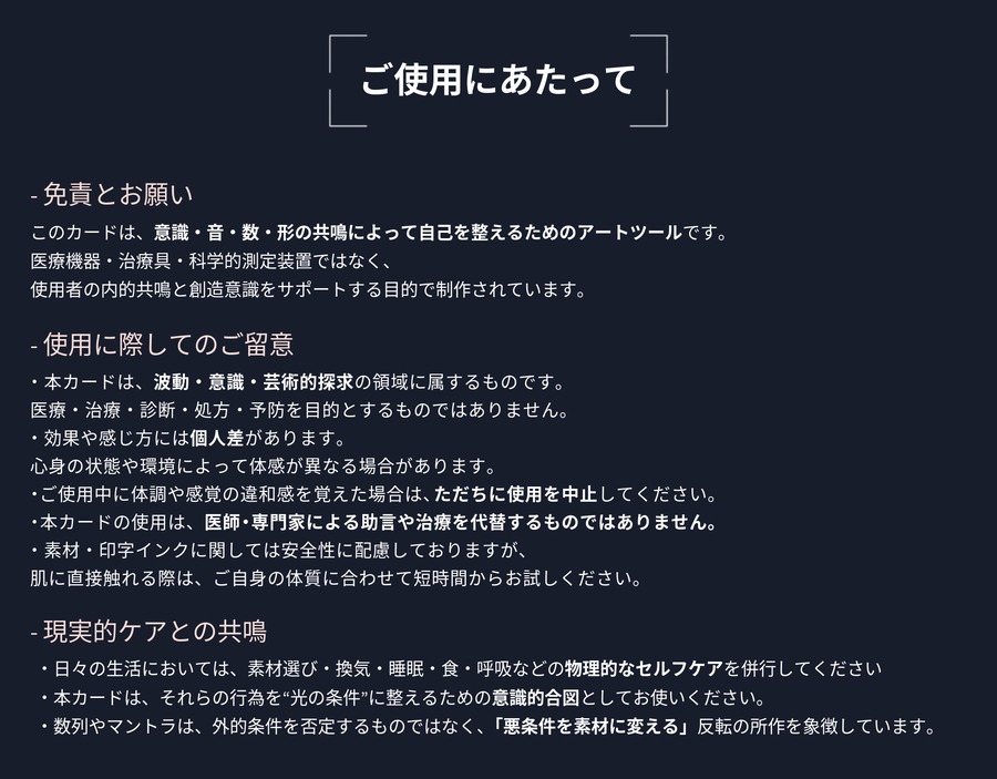他の電磁波対策カードと併用すれば、さらに効果的となり、ネガティブなものをキャンセルどころか、ポジティブなモノへ変換し、自分の波長に調和したエネルギーに包まれていくかのように感じられます。
