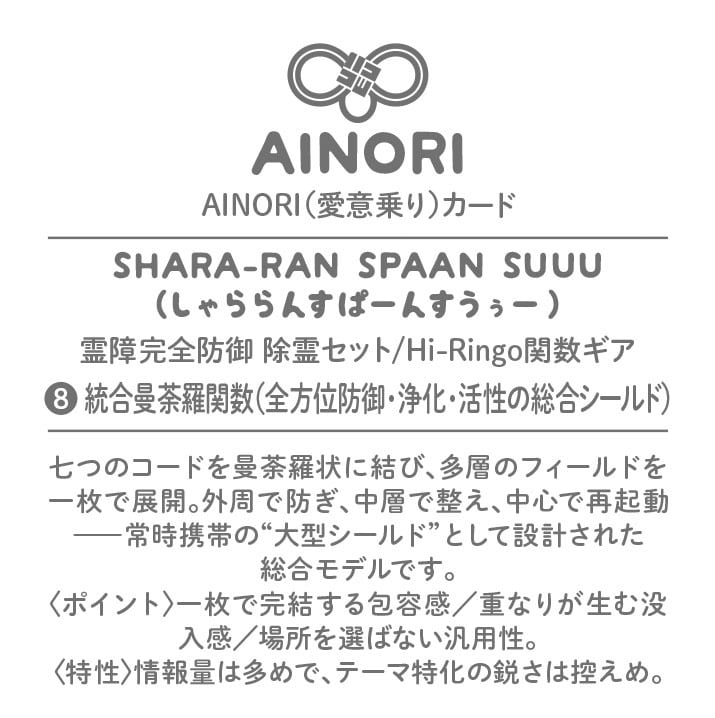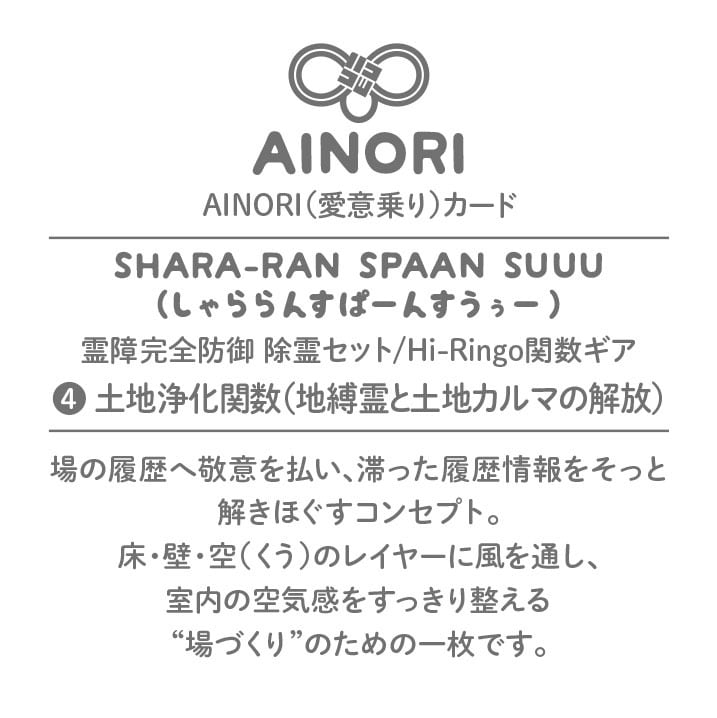 憑依・生霊・呪詛・土地や家系の履歴情報、さらには過去世レベルの干渉までをテーマ別に切り分け、「しゃららん・すぱーん・すうぅー」のリズムでスパッと解除していくことを意図したHi-Ringo関数ギアです。