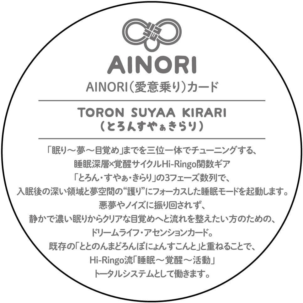 「とろん・すやぁ・きらり」の3フェーズ数列で、入眠後の深い領域と夢空間の“護り”にフォーカスした睡眠モードを起動します。