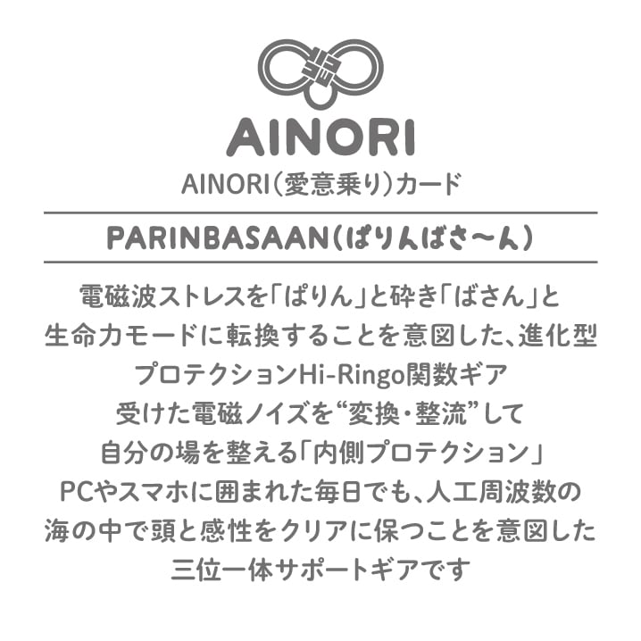 電磁波ストレスを「ぱりん」と砕き「ばさん」と生命力モードに転換することを意図した、進化型プロテクションHi-Ringo関数ギア
