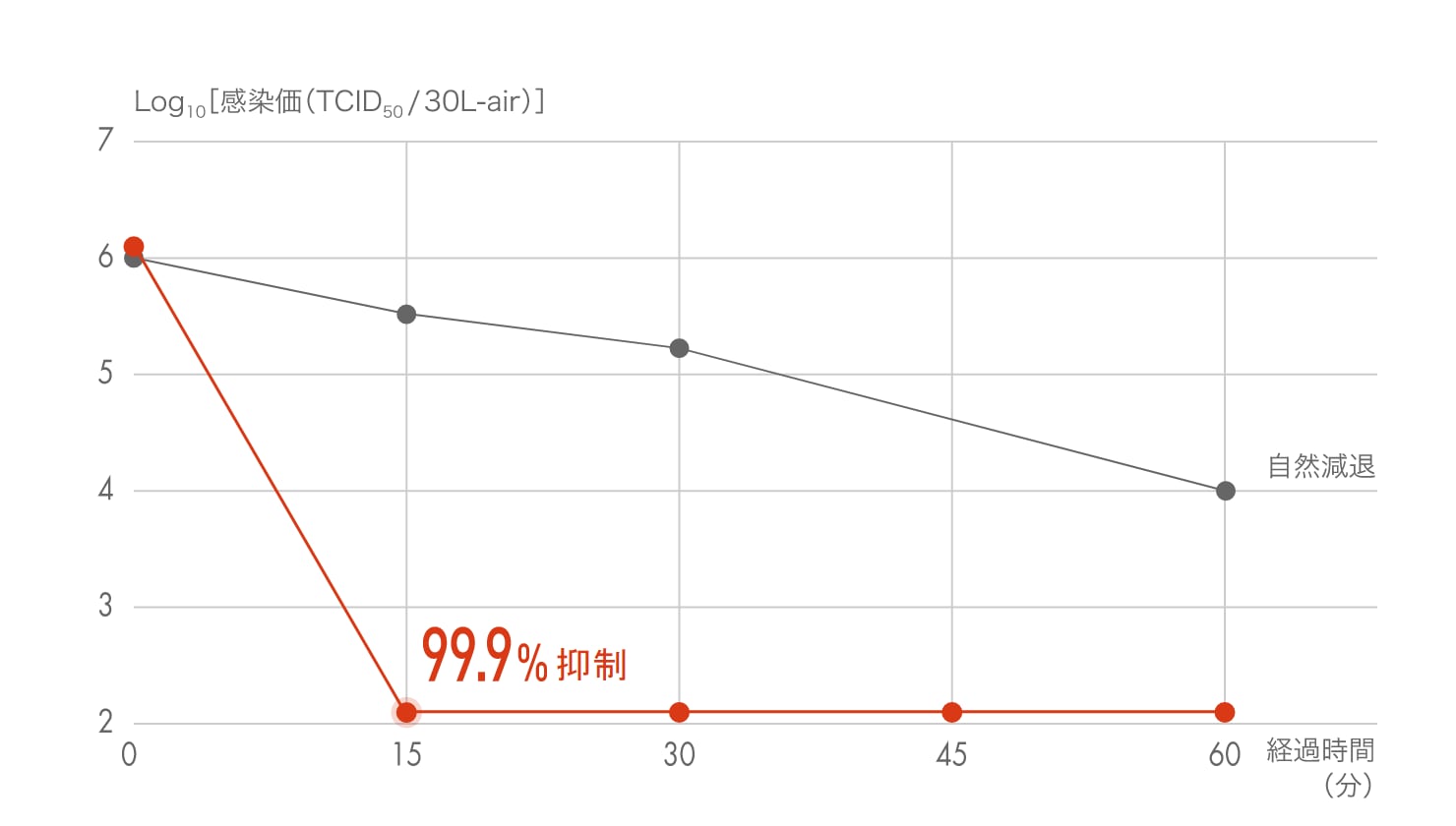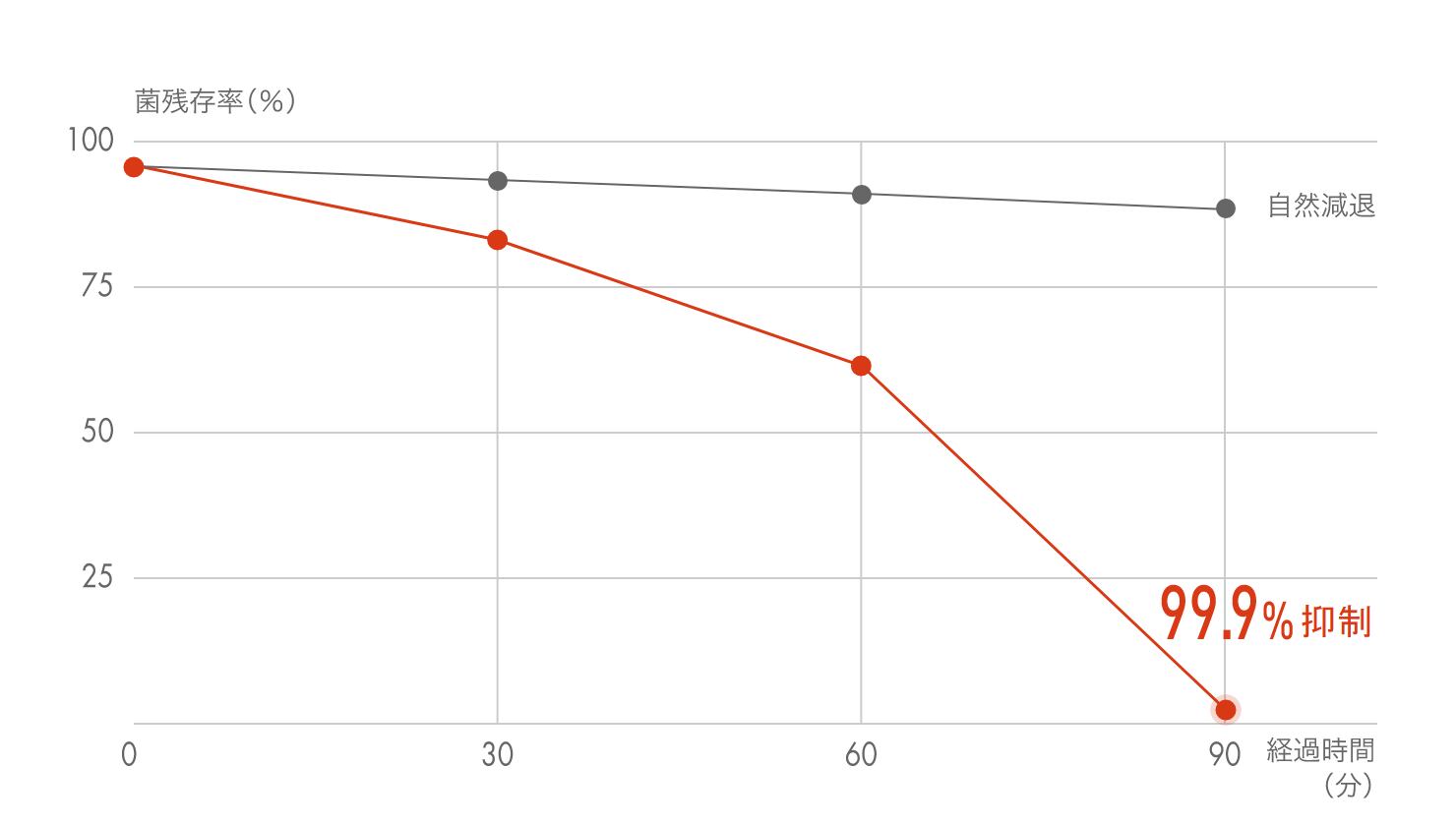 オゾンとマイナスイオンを併用することで、それぞれ単体で使用したときにくらべて除菌効果が10倍に。