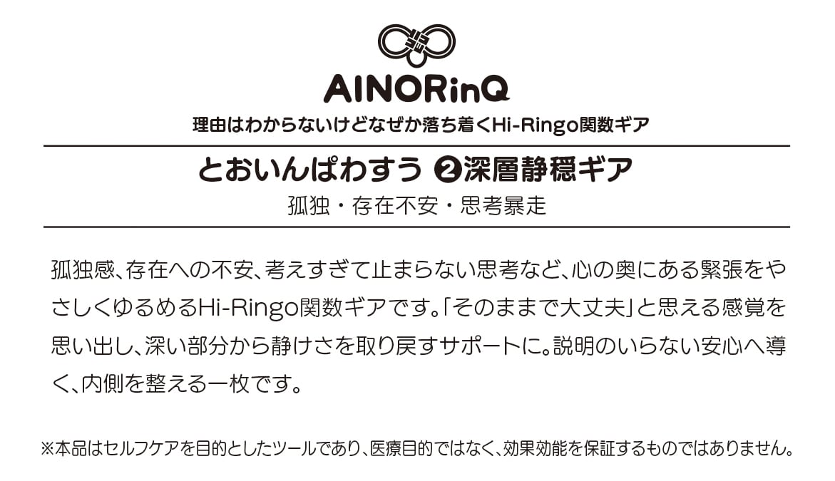 理由はわからないけどシリーズ【F】|なぜか落ち着く とおいんぱわすう❷深層静穏ギア